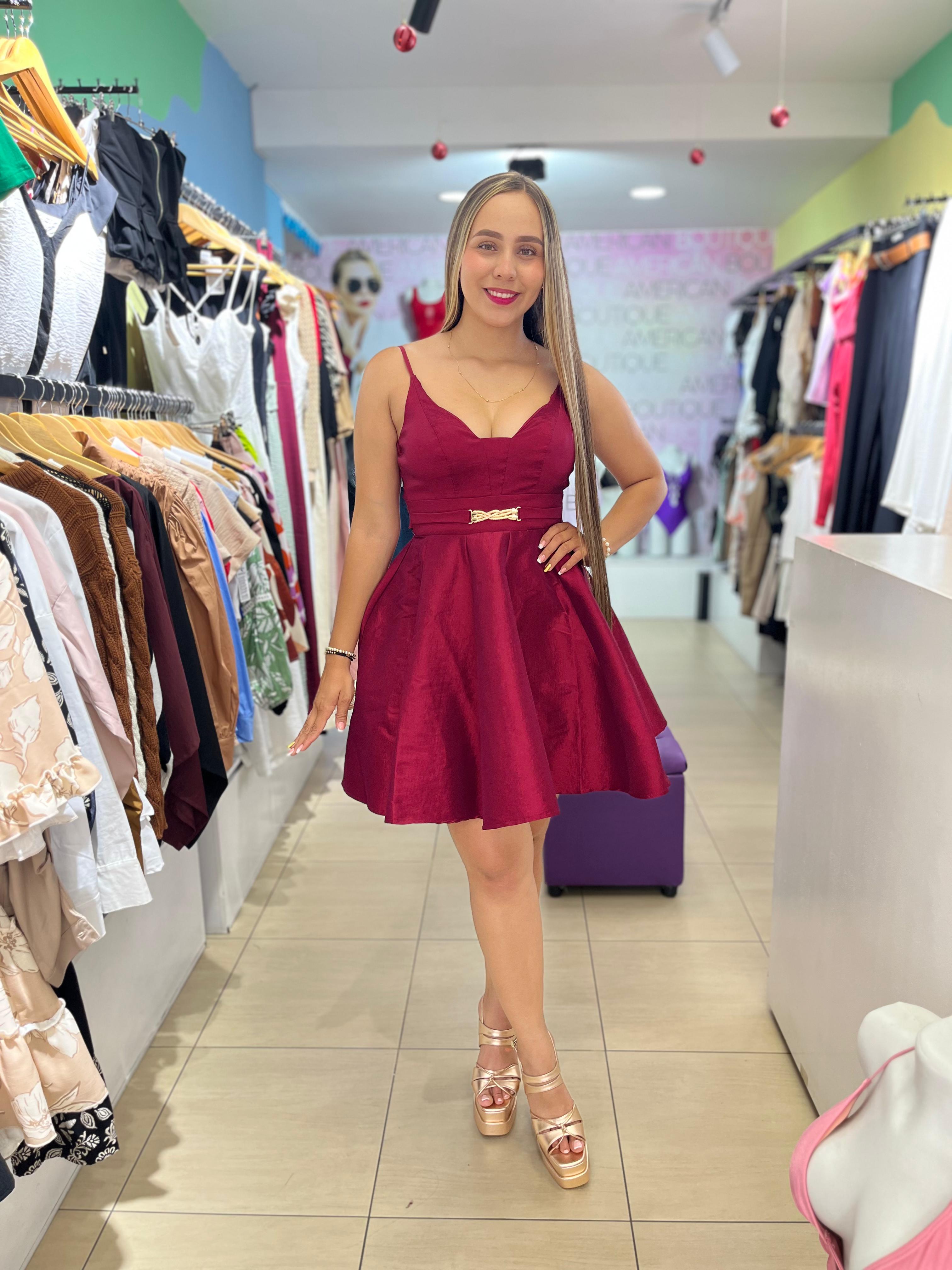 VESTIDO CORTO VINOTINTO GALA HEBILLA